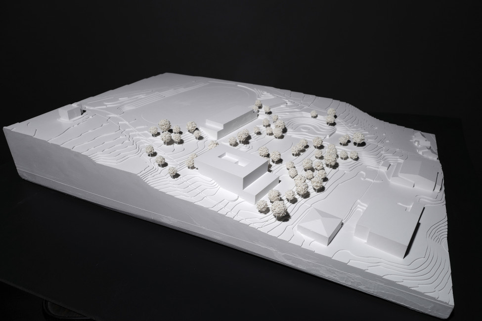 Der bestehenden Topographie folgend, staffelt sich der Baukörper nach Osten hin um zwei Geschoss ab. Den äusseren Geländeanschlüssen folgend wird ein Baukörper mit sehr differenzierten Gebäudefronten entwickelt.